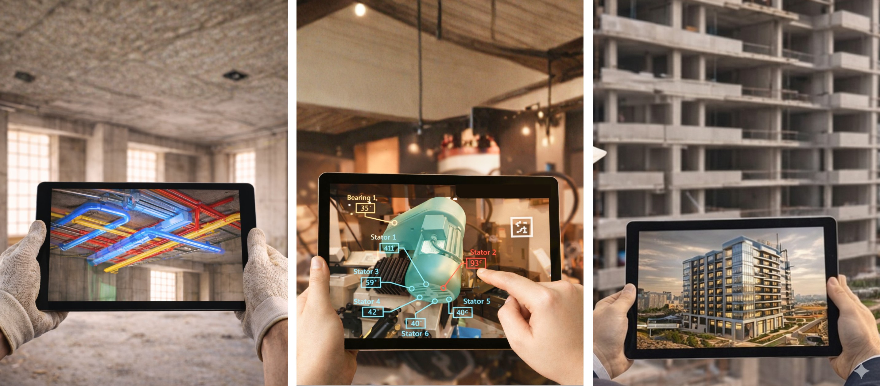 AR overlays digital models onto physical sites, helping workers visualize installations, reduce rework, improve training, and speed up decision-making.